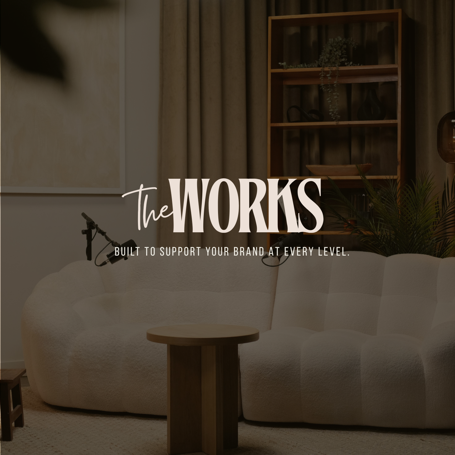 The Works was built to be your on-call creative partner — a full-service content and design concierge that supports your brand at every level. Whether you’re launching a new identity, planning a campaign, or refreshing your look, we’ve got The Works ready to roll.